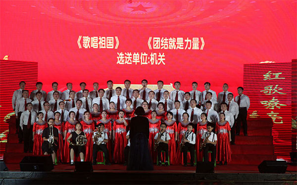 参演队伍逐一为祖国献上的“生日歌”,有机关单位的《团结就是力量》、《我和我祖国》,有机电科的《爱我中华》《今天是你的生日》,有环保科、物业公司、水暖科三家单位联合演唱的《游击队之歌》《走向复兴》……