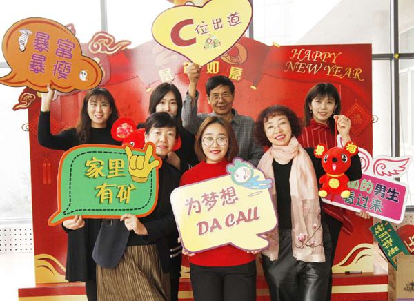 大红色的背景板醒目喜庆,每天驻足合影的职工络绎不绝,大家手拿写有 “创新、和谐、富强、振兴”、“服务同煤、做强宏远”、“撸起袖子加油干”、“鼠我棒”等牌子,摆出各种姿势定格喜悦,并在背景板上写下对公司最美好的祝愿。