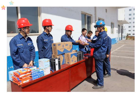 中天合创公司葫芦素煤矿开展“加油好兄弟,我为工友送安全”活动。该矿机关工作人员为井下一线职工送去了西瓜、牛奶等水果、饮料,并在工作面现场向一线职工叮嘱安全防范措施。