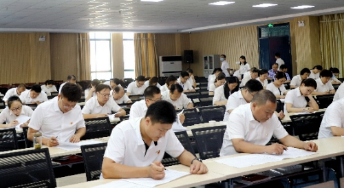 “竞赛考试为闭卷考试,要严格遵守考场秩序,所有资料和电子产品上交或关闭,自己独立完成测试,不得交头接耳……”7月7日下午,淮北煤电技师学院组织支部书记、支部委员和党小组长60余人集中进行“七一”党建知识竞赛,政工部负责人宣布考试纪律并严格监考。