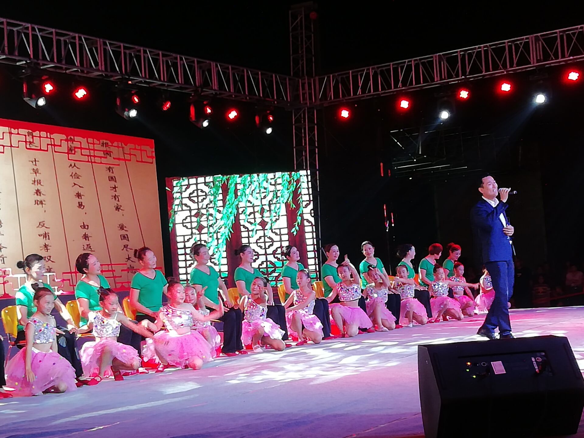 晚7:30,歌舞《我和我的祖国》拉开了演出序幕。伴着抑扬顿挫的乐曲,雀之灵少儿舞蹈团的孩子们以矫健的舞姿、丰富的肢体语言和现代诗化的表现手法,给人以酣畅的《金秋小团圆》的审美愉悦。太极《功夫扇》是东滩矿文化广场多年来的保留节目,东滩矿太极队的队员们在太极拳传统套路的基础上,揉和了其他武术项目以及京剧、舞蹈等动作编排而成,其载歌载舞、快慢相间、刚柔并济、活泼新颖的特色,令人耳目一新,尽显矿区退休老人意气风发、健康向上的精神风貌。豫剧《穆桂英挂帅》选段《九历边庭战马狂》让大家回到那个激情的年代。今年“七一”前夕,省吃俭用积攒下一万块钱,向党组织缴纳大额党费的81岁退休老矿工任申业来到舞台,用诗歌《致敬战疫者》来表达自己的爱党爱国爱矿情怀,“咱是老党员,咱得带好头!”任申业说,在有生之年,一定讲好党的故事,让更多的人热爱我们的党和国家。
