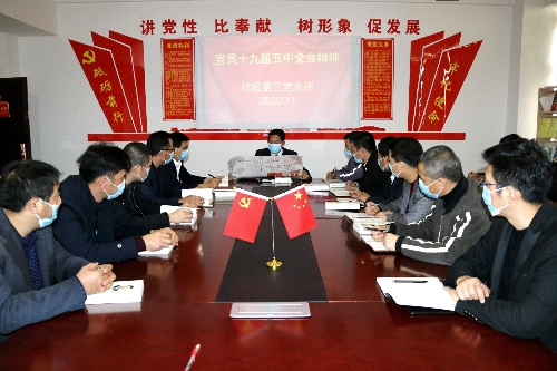 11月14日,在该矿综掘第三党支部党员活动室,党支部书记正带领党员组织学习十九届五中全会公报内容,对10个方面决定性成就、9方面远景目标、6大“新”目标及12大主张进行了逐条讲解。在研讨过程中,参会人员对在今年特殊的时期,中国成为世界上唯一GDP正增长的国家而感到由衷地自豪和高兴。党员吕新金说:十九届五中全会精神鼓斗志,聚人心,做为一名中共党员感到很振奋很骄傲。
