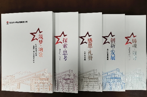 韩家湾煤炭公司新编印的企业文化系列丛书包括《筑梦·颂歌——新闻作品集》《感恩·礼赞——文艺作品集》《铸魂·聚力——企业文化故事》《创新·发展——全员创客成果集》《探索·思考——理论研讨成果集》,这5本丛书从新闻纪实、文艺创作、创新发展、理论研讨、企业文化小故事等五个方面全方位展示了近年来企业文化建设方面的特色亮点和新时代矿工昂扬向上的精神风貌,受到了干部职工的一致好评。