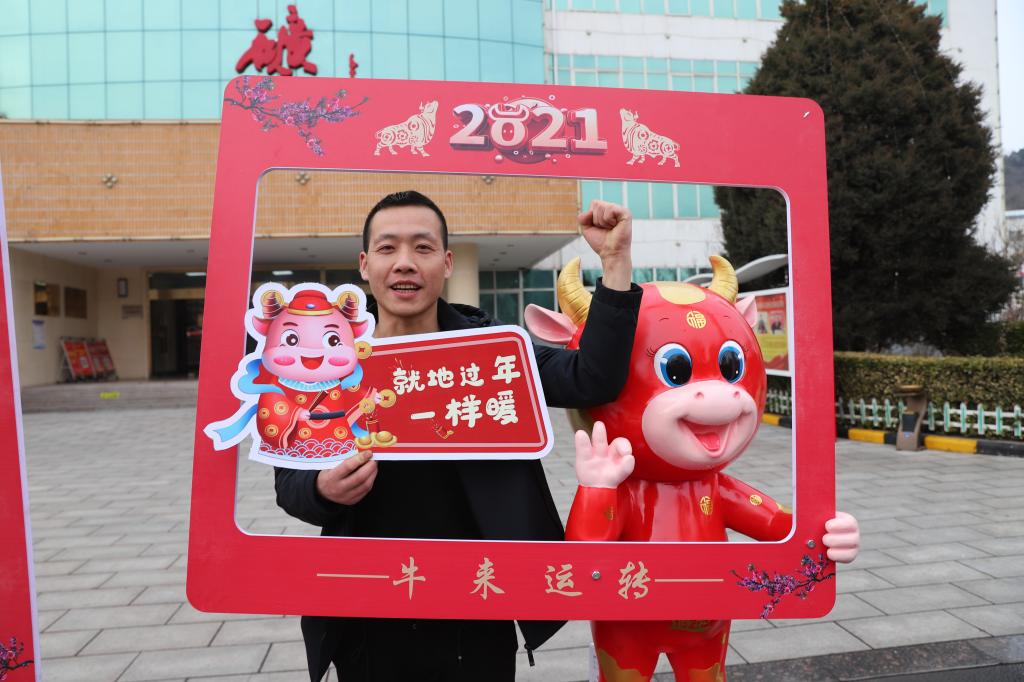 “今天是新春的第一天,咱矿工会搞的活动真不赖,既开心又欢乐,还有奖品拿,让大家就地过了一个愉快的新年。”高举“就地过年一样暖”手牌的职工宋邵斌高兴的对笔者说。