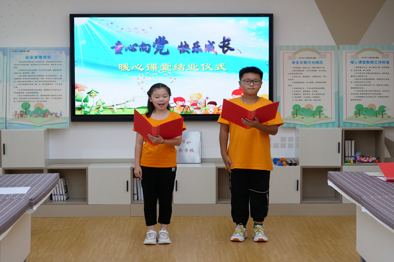 “少年强则国强”,暖心课堂的孩子们既能主持,又能表演,孩子们完美地演绎了何谓身怀绝技,歌舞、朗诵、乐器、魔术……短短两个小时的结业典礼,孩子们精心准备,尽显才艺。到场老师还为孩子们分别颁发了“学习之星”“创造之星”“文明之星”“智慧之星”“阅读之星”“希望之星”奖状,把结业典礼推到了高潮。老师们特意准备了结业蛋糕,嘱咐孩子们要传承红色基因,珍惜今天拥有的良好学习环境和学习机会。