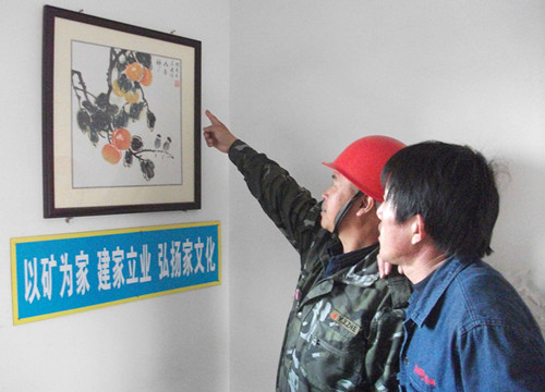 山东能源新矿集团内蒙能源针对员工来自集团公司不同单位,文化有所差异、素质参差不齐的情况,广泛开展树正气、聚人心、促发展大讨论活动,积极倡导进了内蒙能源门,就是一家人的观念,并举办了家文化书画展,以凝聚团队合力,加快企业发展。图为长城三矿员工在观看家文化书画展。