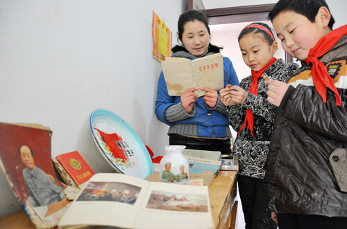 12月24日,安徽淮北矿业朱仙庄矿工人村一居民在家中举办追忆毛主席红色藏品展,纪念毛泽东同志诞辰120周年。今年12月26日是毛泽东同志诞辰120周年。红色藏品展展出的藏品既有五六十年代生活日用品也有毛主席像章、语录本、《毛泽东选集》、军人立功证等,以此表达对毛主席的怀念之情。