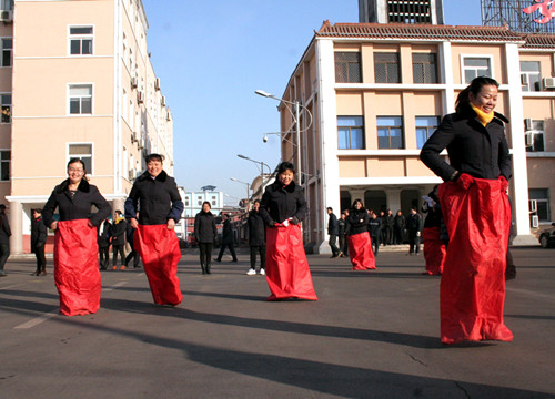 新年将至,为丰富职工的业余文化生活,让广大职工度过一个热烈、文明、喜庆、祥和的元旦佳节。淮北矿业杨庄煤矿工会精心组织,早安排、早落实,坚持节俭,按照贴近实际、贴近生活、贴近群众的原则。于12月27日开展了拔河、跳绳、袋鼠跳、象棋、围棋、桥牌、乒乓球等职工喜闻乐见、形式多样的文化娱乐活动。近1000名职工参与系列活动。图为袋鼠跳比赛现场。