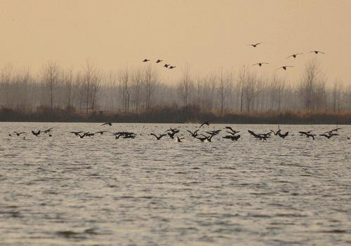 12月27日傍晚,安徽皖北煤电刘桥一矿塌陷湿地有一群天鹅在欢快地嬉戏,笔者按下相机的快门,留下了这组图片。