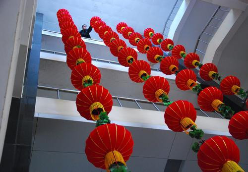 大红灯笼扮靓矿区迎春节