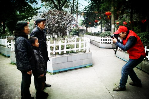 孩子坐中间,婆婆爷爷坐两边,一起说‘茄子’!1月26日,重庆能源集团松藻煤矿的青年志愿者正在为留守儿童拍全家福。随着相机快门声的接连响起,一张张幸福的笑脸被定格。这些留守儿童的照片将传到网上或洗印成照片,送到远在他乡打工,不能回家过年的孩子父母手中。