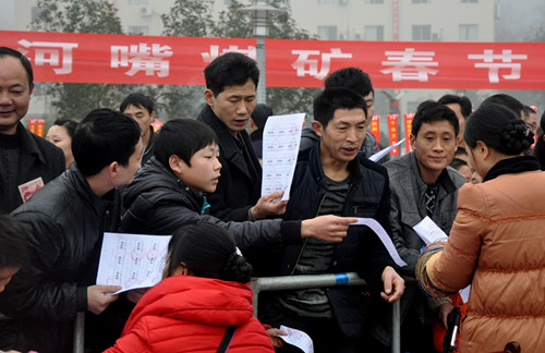 为活跃春节气氛,丰富职工家属生活,川煤集团达竹公司小河嘴煤矿工会在马年春节期间组织开展了丰富多彩的游园活动,该矿职工家属热情高涨,玩得不亦乐乎,同时拿到了奖品更是开心,活动现场欢笑不断、气氛热烈。矿区有1500余名职工家属参加了活动,发放各类奖品价值3万余元。图为春节游园活动现场。