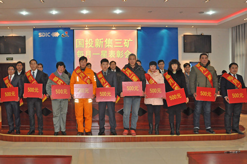 为发挥各类先进人物的正能量,充分激发全体职工干事创业的热情。2月11日下午,国投新集三矿在培训楼三楼对1月份各单位在安全、生产、经营、服务等方面涌现出的10位每月一星进行隆重表彰,矿领导分别为先进个人进行了颁奖。