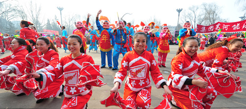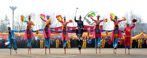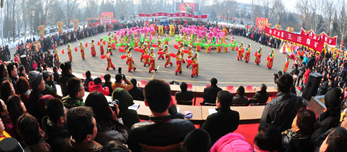 2月14日上午,在传统元宵佳节,山西潞安矿业集团公司举行2014大型社火表演。