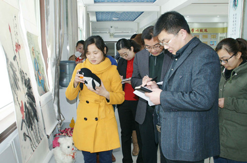 为迎接三八国际妇女节的到来,鼓励女职工爱岗敬业、争创标兵,近日,山东能源新矿集团新阳能源举办了女工读书演讲比赛和女工手工艺作品展览,赢得了广大女职工的热烈欢迎。图为评委为女工手工艺品现场打分。