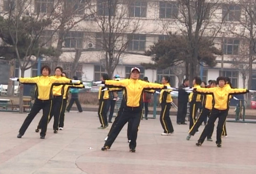 在慢摇吧活动现场,伴随着歌曲《绿旋风》带来的激情旋律,四十余名女职工身着统一服装,整齐舞起当下非常流行的齐齐哈尔有氧健身操。此健身操共十二节,涉及全身各个部位运动,由于动作简单、易学,音乐节奏鲜明,深得女职工喜爱。这支女职工自发组织起来的舞蹈团队在半年的时间内,已由当初十人发展壮大为百人大团队。