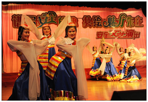 演出在充满藏族民族风情的歌伴舞《吉祥颂》中拉开帷幕。歌曲《爸爸去哪儿》童言童趣,天真烂漫,浓浓亲情令人感动。快板《朱庄煤矿谱新篇》用欢快的节奏,朴实的语言,真挚的感情,歌颂了50多年来,一代又一代朱庄人在严细务实,争创一流的朱庄精神引领下,栉风沐雨,艰苦奋斗,砥砺奋进,攻坚克难,做出的可歌可泣事迹,展示了当代煤矿职工的时代精神风貌和矿区翻天覆地的变化。歌曲《老婆最大》唱出了女性对爱情、对婚姻最真实、最质朴的期许和渴望。配乐诗朗诵《协安员赞歌》,赞扬了矿区协安员在平凡的岗位上,为矿工冬送温暖,夏送清凉,用真诚和朴实筑起了煤矿安全的第二道防线而取得的不平凡的成绩。小品《准婆婆驾到》,幽默风趣,洋溢着浓厚家庭生活气息。舞蹈《俏兰花》,运用花鼓灯元素,兰花妹子们在春意盎然的季节里翩翩起舞,柔情似水,俏丽妩媚,奔放飘逸,令人陶醉。歌曲《平安是福》用歌声唱出了矿区职工安全是煤矿永恒的主题,平安是矿山不变的主旋律的心声。舞蹈《欢快舞曲》和歌曲《怒放的生命》等节目也各具特色,激情四溢,不时赢得观众的热烈掌声。
