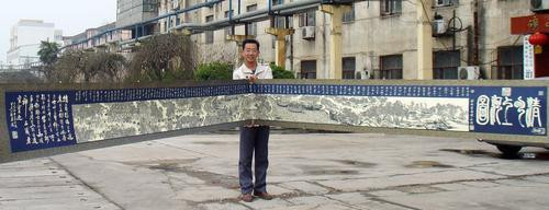 民间剪纸艺人杨继富利用工作之余,花了3年时间创作出剪纸作品《清明上河图》,长7.8米,高0.5米。这不但是对原作品的还原,更是新的创作,别具特色,让人称奇。
