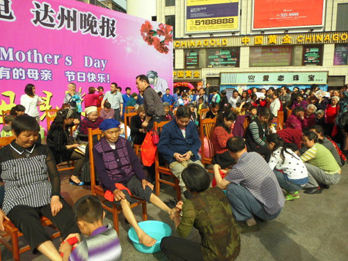 川煤集团达竹金刚煤矿10名“孝子”在广场为母亲洗脚