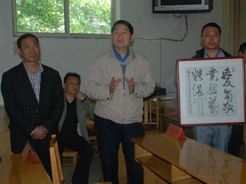 五阳矿党委书记李明书、工会主席段双晋陪同闫接囤一行先后深入该矿运输一队、运输二队、煤质科,向全国煤炭工业优秀机电队长陈利强、山西煤炭系统劳模申庆红、省第四届青工技术大赛优秀选手郭玉英送去了满载潞安文联深情祝福的一幅幅书法作品。