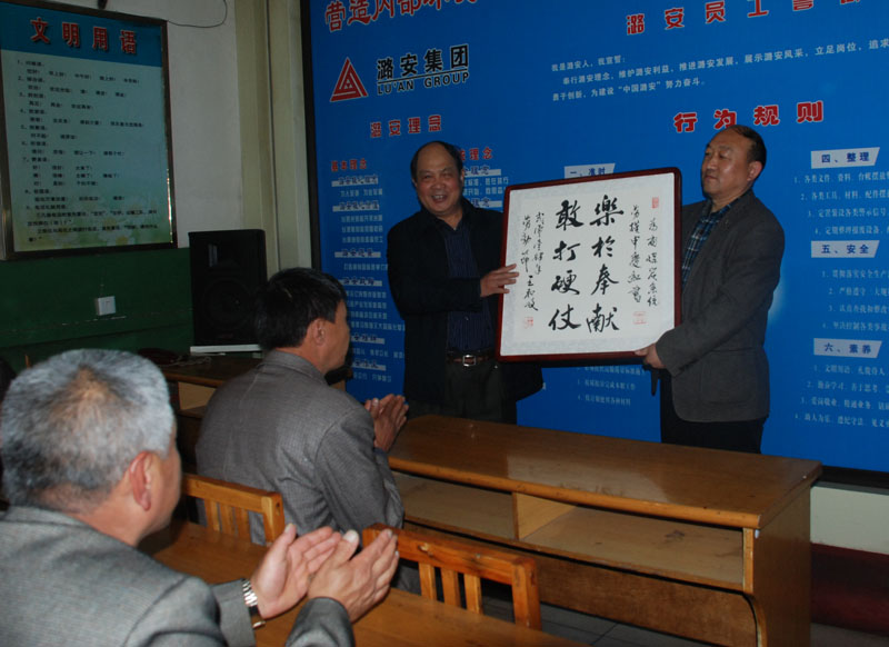 为弘扬劳模精神、传播煤矿文化、展示矿工风采,根据中国煤矿文联书法协会送文化到基层活动安排,近日,潞安集团文联与五阳矿联合举办了向劳模赠送书法作品活动。潞安集团文联主席阎接囤一行,带着对矿山劳模的祝福,将集团文联书法爱好者撰写的100余幅蕴含劳模精神的书法作品,送到了五阳煤矿劳模、先进手中。