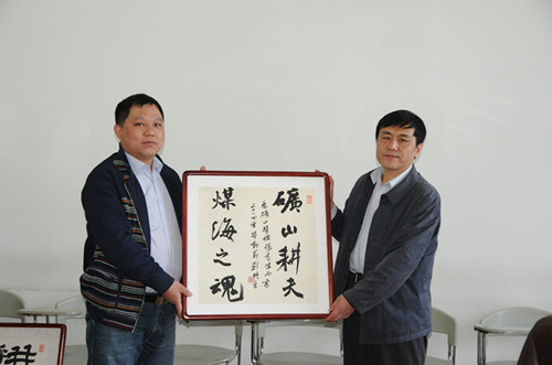 五阳矿党委书记李明书、工会主席段双晋陪同闫接囤一行先后深入该矿运输一队、运输二队、煤质科,向全国煤炭工业优秀机电队长陈利强、山西煤炭系统劳模申庆红、省第四届青工技术大赛优秀选手郭玉英送去了满载潞安文联深情祝福的一幅幅书法作品。