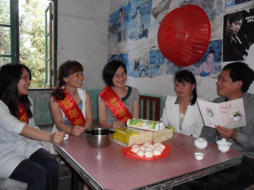 活动由女工安全协管员分组负责,用女工特有的温柔和细心入户为班组长过生日。该矿还充分利用设在井口广场的电子大屏幕滚动播放生日祝福语,并为每一位过生日的采掘班组长送去1份长寿面、6个鸡蛋、一张生日贺卡。入户的女工协管员们在为班组长过生日的同时,也不忘叮嘱班组长搞好安全生产。图为女工安全协管员为采煤班长刘少海过生日。