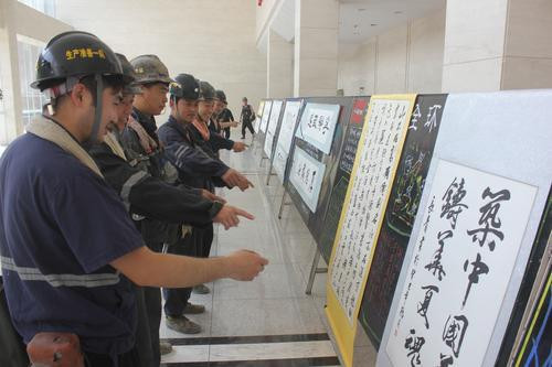一幅幅刚劲有力的书法作品吸引了矿工们的注意力,他们一边欣赏,一边赞叹不已。这是安徽国投新集口孜东矿职工书法爱好者自己创作的作品。据悉,该矿已经成立由12名职工书法爱好者参加的书法协会,他们不定期举办书法作品展,并吸引30多名职工练习书法。