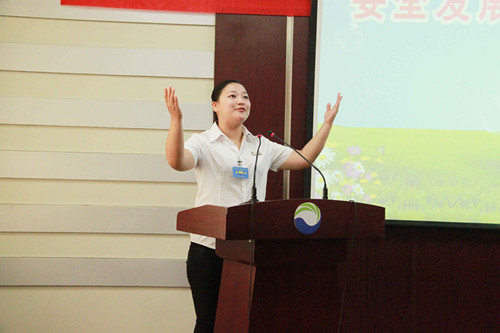 为强化青工的安全责任,提升安全意识,在第全国安全生产月到来之际,山东能源新矿集团泰兴物业公司举办了强化红线意识,促进安全发展普通话演讲比赛。比赛中,选手们围绕敬畏生命、敬畏法律、敬畏制度、敬畏岗位主题,结合典型案例,从不同的角度阐述了安全对企业、对家庭的重要性,使广大职工在浓浓亲情的感召下,做好各项安全工作。图为比赛现场。