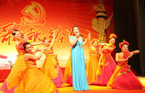 舞姿翩翩歌盛世,歌声嘹亮颂党恩。为纪念建党93周年,山东能源新矿集团华丰煤矿举办了以颂歌献给党,矿工最光荣为主题的庆七一颁奖文艺演出。整场晚会主题鲜明、气氛热烈,演员们精彩的表演博得了现场观众的阵阵掌声。图为庆七一晚会现场。