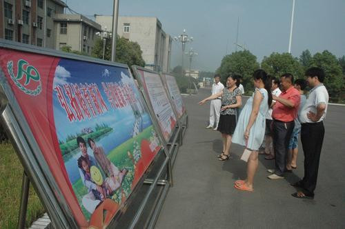 第二十五个世界人口日来临之际,7月9日,安徽淮北矿业海孜矿在矿工业广场举办弘扬婚育新风,共建健康幸福生活主题牌板展,普及优生优育、生殖健康知识,图为矿计生办负责人在为一名孕中女职工解说优生优育知识。