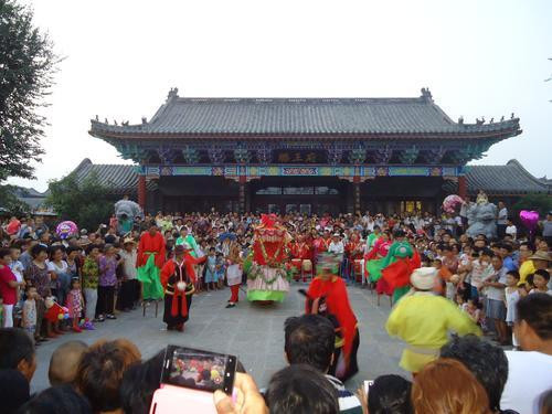 8月3日,山东丰源远航煤业有限公司北徐楼煤矿的职工自发组织去紧邻的微山湖古镇,观看七夕节民俗表演。图为欢快的民俗表演和非物质文化遗产展示区的镜头。