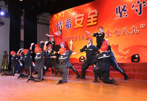 8月26日下午,安徽淮北矿业集团朱庄煤矿职工礼堂歌声悠扬,舞姿翩翩,情系安全,坚守红线2014年安全七八九安全主题文艺演出正在精彩上演。歌舞、情景剧、快板、小品等节目精彩纷呈,表达了矿区职工家庭呼唤安全,关注安全,关爱生命的美好愿望,洋溢着浓浓的安全亲情氛围。