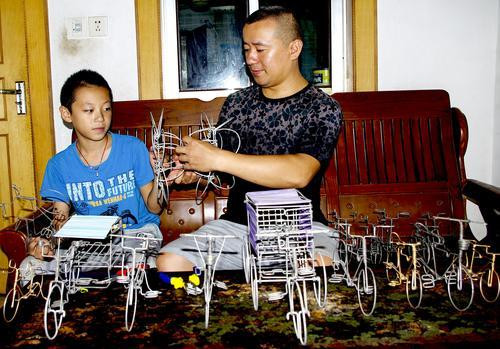 淮北矿业集团石台矿矿工韩万彬酷爱编织手工艺品 来源:淮北矿业集团石台矿 作者:刘瑞 时间:2014-08-27 【字体:小 大】 8月26日,韩万彬在向儿子传授鸟巢编织制作技术。据了解,现年38岁的韩万彬,是安徽淮北矿业集团石台矿业保运二区皮带机司机。2012年夏天去青岛旅游时,看到景区一位艺人用铁丝、铜丝在编织自行车等手工艺品,于是,回家后他后就慢慢试着练习。 两年来,他不仅能编织自行车、三轮车、黄包车,而且还能编织复杂多变的鸟巢,并且可以变换各种形状。他编织的手工艺品精致美观,受到不同人群的喜爱。 智能标签: 淮北矿业集团 石台矿 相关内容 分享到: 【打印正文】