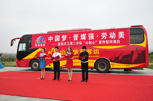 为贯彻落实晋煤集团两会精神和集团党委下达的《关于传承精神众志成城艰苦奋斗勇于担当为企业新一轮改革发展贡献力量的意见》,今年5月至8月份,由晋煤集团工会组织、以蓝焰文工团为主进行的中国梦·晋煤强·劳动美心贴心宣传慰问演出活动,在该集团基层单位如火如荼进行。