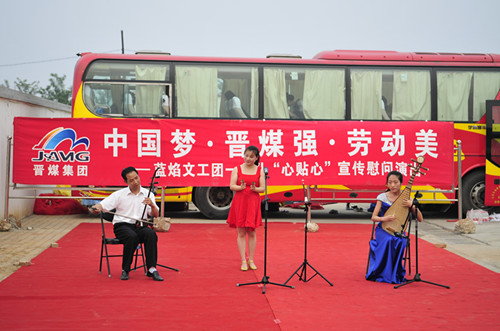 为贯彻落实晋煤集团两会精神和集团党委下达的《关于传承精神众志成城艰苦奋斗勇于担当为企业新一轮改革发展贡献力量的意见》,今年5月至8月份,由晋煤集团工会组织、以蓝焰文工团为主进行的中国梦·晋煤强·劳动美心贴心宣传慰问演出活动,在该集团基层单位如火如荼进行。