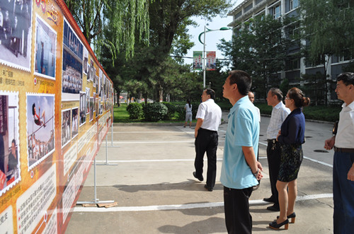 今年是同煤集团中央机厂建厂65周年。中央机厂举办了第三届员工书画摄影展,庆祝建厂65周年。共展出书画摄影作品一百多幅。作品体现了煤矿机械工人热情满怀、昂扬向上的精神风貌,同时也展示了六十五年来,中央机厂从小到大、从弱到强的奋进历程和骄人成绩。图为同煤集团有关部门领导、中央机厂干部员工观看展出。