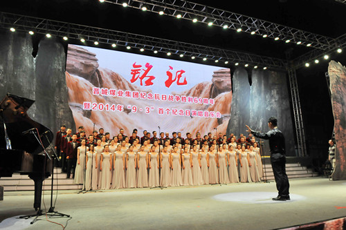 正值中国人民抗日战争暨世界反法西斯战争胜利69周年纪念日之际,9月3日晚上,晋煤集团工会主办了晋煤集团纪念抗日战争胜利69周年暨2014年‘9.3’首个纪念日演唱音乐会。