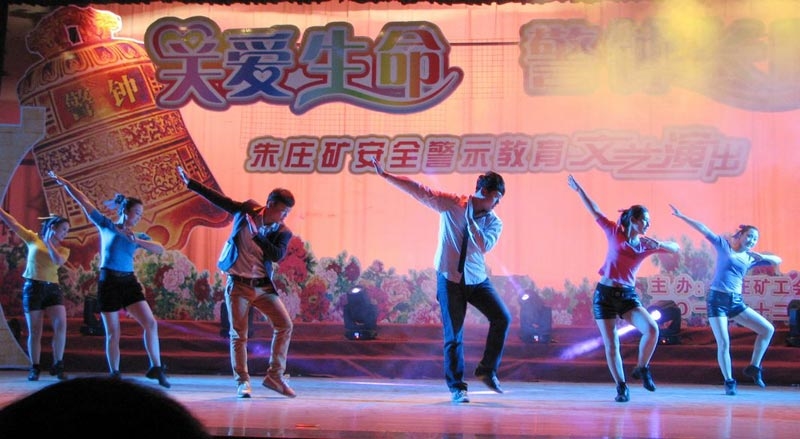 12月30日下午,安徽淮北矿业朱庄煤矿工人会堂内,霓虹闪烁,歌声飞扬,座无虚席,由该矿工会举办的“关爱生命、警钟长鸣”安全警示教育文艺演出正在进行。