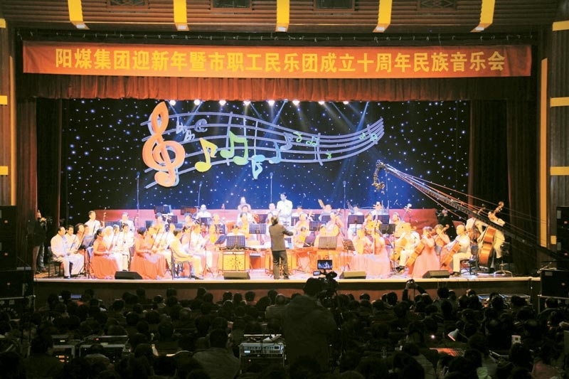 2014年12月30日晚,阳煤集团举办的迎新年暨市职工民族乐团成立10周年民族音乐会在阳泉宾馆报告厅倾情奏响。市人大常委会副主任、市总工会主席王振国,阳煤集团工会主席张建起与七百多名职工、家属一起聆听了音乐会。音乐会特邀我市工人文化宫职工民族乐团为大家献上一场视听盛宴。