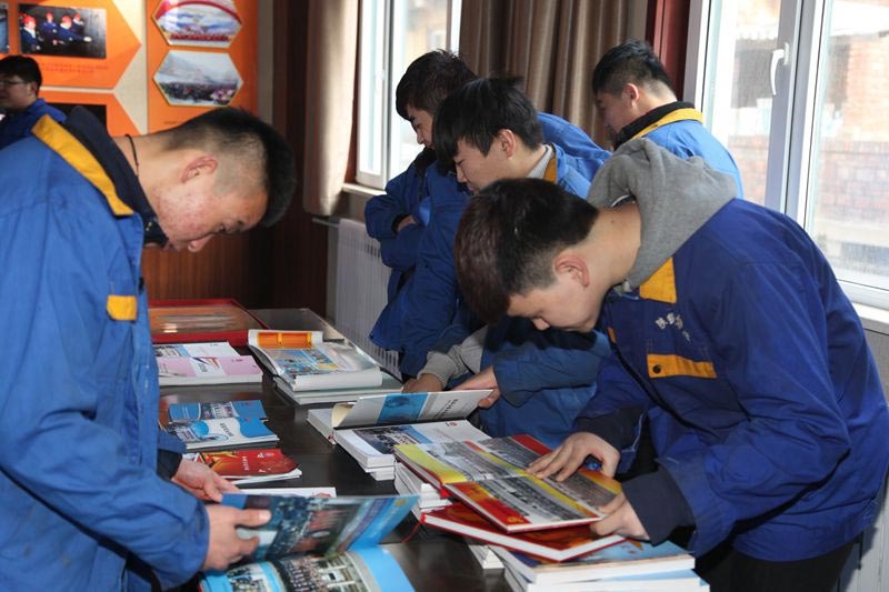 学生们在翻阅企业文化手册
