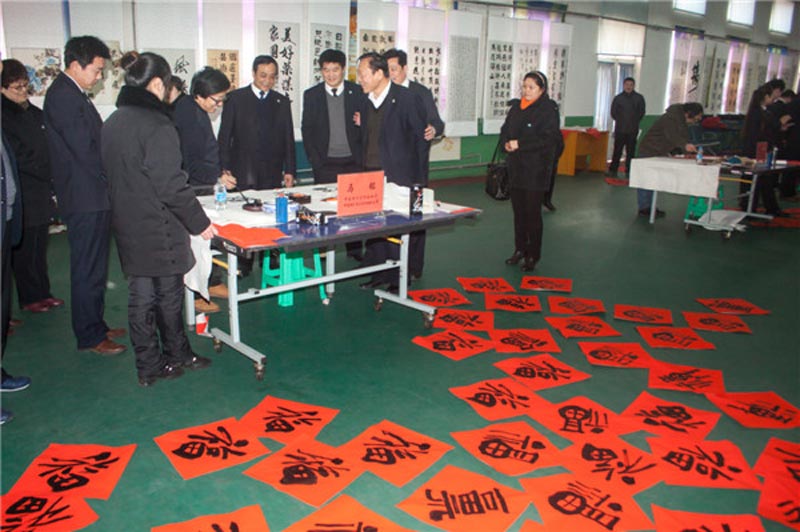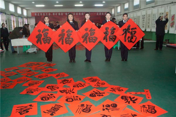 随后书法家代表还走进该矿南副井口和采掘区队,为上下井的职工现场书写春联,将撰写好的春联赠送给采掘一线的职工,真正做到了“心系一线为职工,情暖矿区送祝福”的活动宗旨。