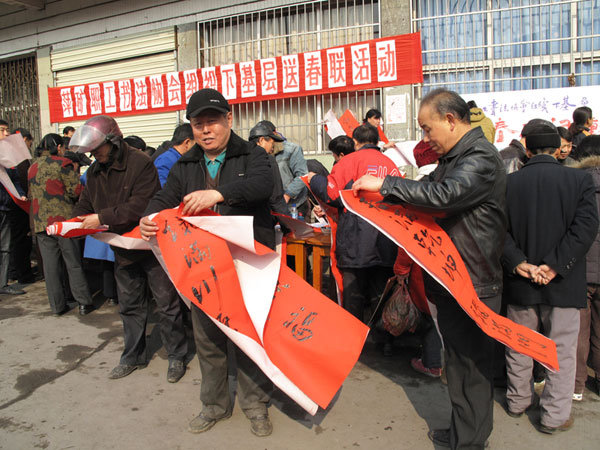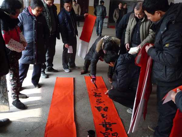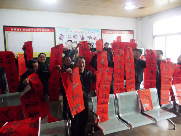 萍矿集团公司职工书协下基层送春联 来源:萍乡矿业集团 作者:单伟 时间:2015-02-15 【字体:小 大】 江西萍乡矿业集团公司职工书协于2月9-12日,组织重点作者分别到高坑煤矿、安源煤矿、青山煤矿等9个基层单位进行现场书写春联。他们深入生产一线,赴井口、班组书写,挥毫泼墨,用行书、楷书、草书等各种字体,撰写以迎新春、庆新年为内容的春联近2000余副。 智能标签: 萍乡矿业集团 书协 相关内容 分享到: 【打印正文】