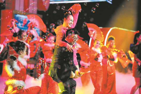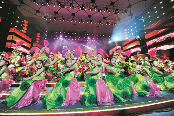 晚会结束后,孟俊国、张建起等领导上台慰问了全体演职人员并与大家合影留念。(摄影: 郭强)