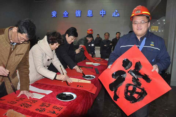 2月14日上午,梁宝寺煤矿工会与济宁市书法家协会联合开展的“文化下基层——为矿工写春联送祝福”公益活动在梁宝寺煤矿安全信息中心大厅火热进行。济宁市书协一行8人,应现场员工“私人订制”要求,现场题写百余副寓意吉祥的春联和“福”字,为该矿员工送去新春问候,受到一致好评和赞誉。