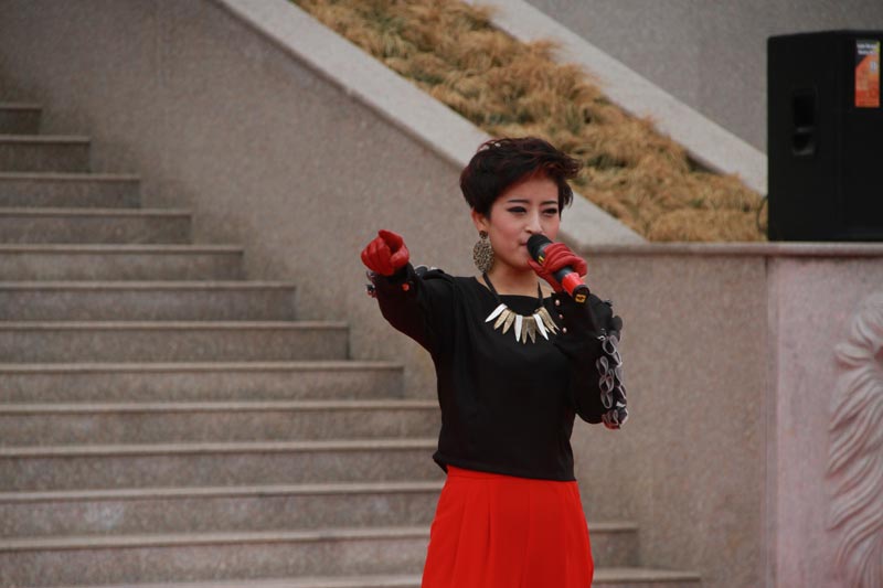 歌手高金秀在亭南煤业为职工演出歌曲《打开春天》