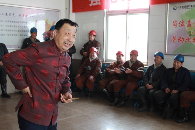 王长安在陕西亭南煤业井口为职工演出山东快书《幸福路》