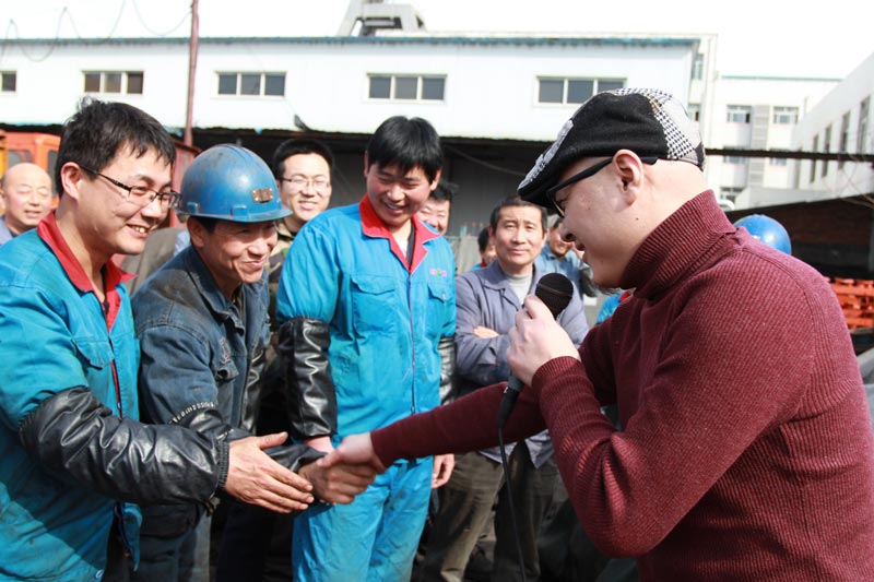 慰问团在正通煤业表演音乐快板《淄矿英雄谱》