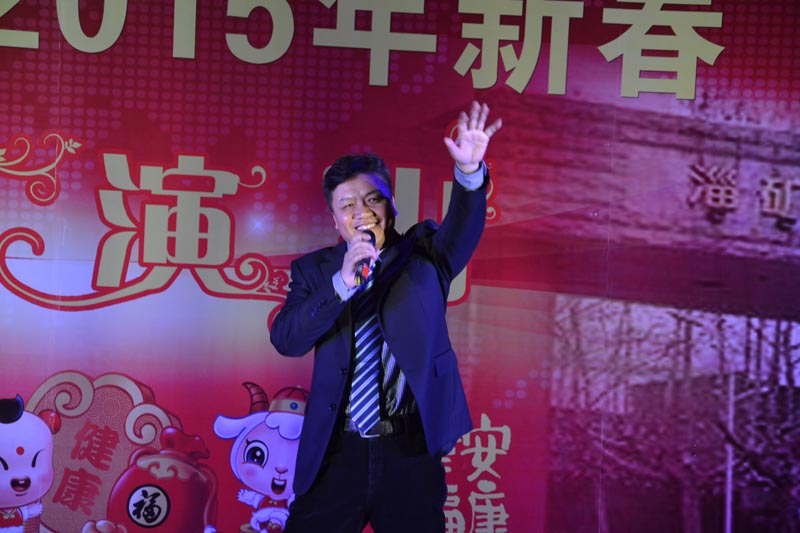 世林化工员工王如在世林化工与慰问团演员同台为职工演唱歌曲《暗香》