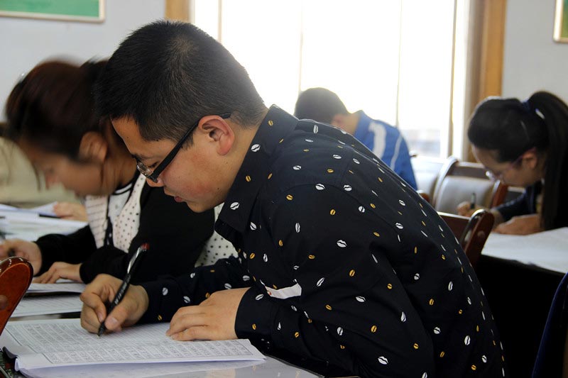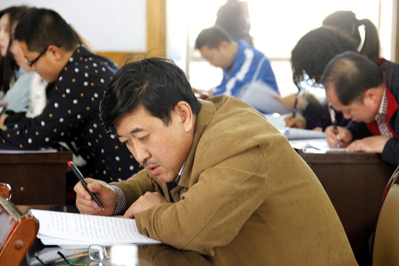 比赛现场,参赛者们仔细阅读,缜密构思,洋洋洒洒尽情展现自己的写作才华。此次比赛吸引了127名选手踊跃参加。